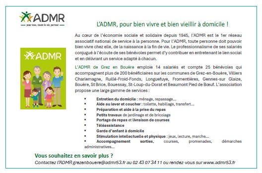 Les services ADMR en Mayenne sont présents sur toutes les communes du département. Le réseau comprend :