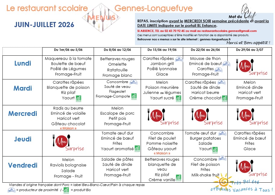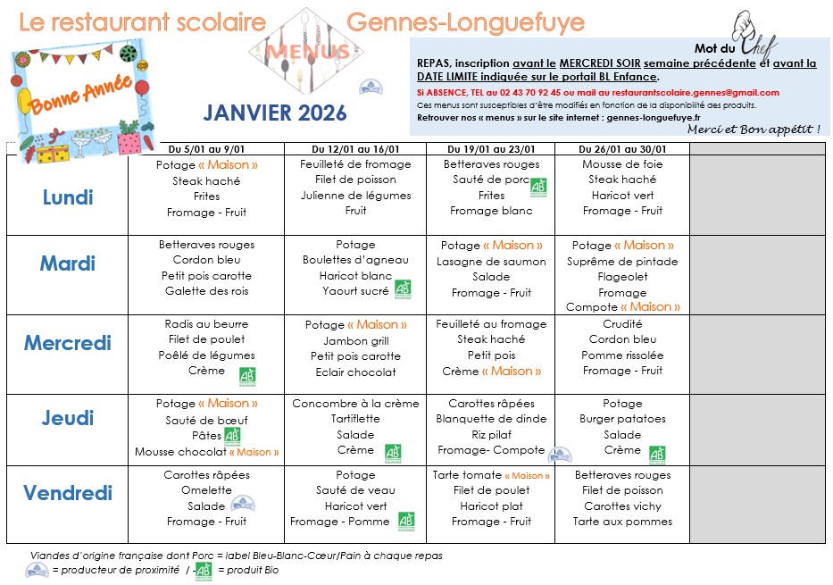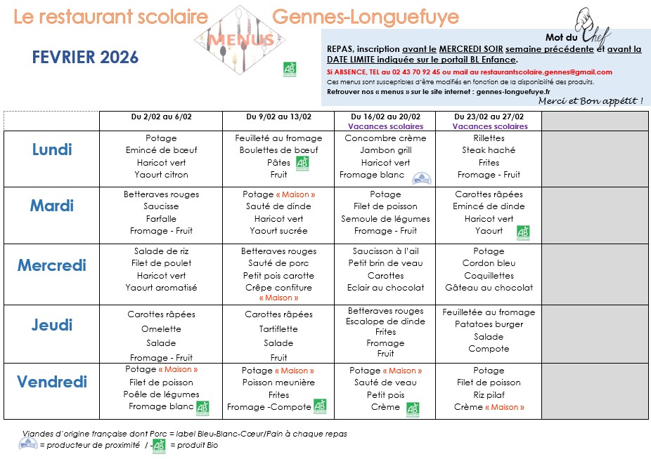 Des risques de retard de livraison ainsi que la variation des effectifs des enfants pour l’utilisation du restaurant scolaire pourraient entraîner des modifications dans les menus.