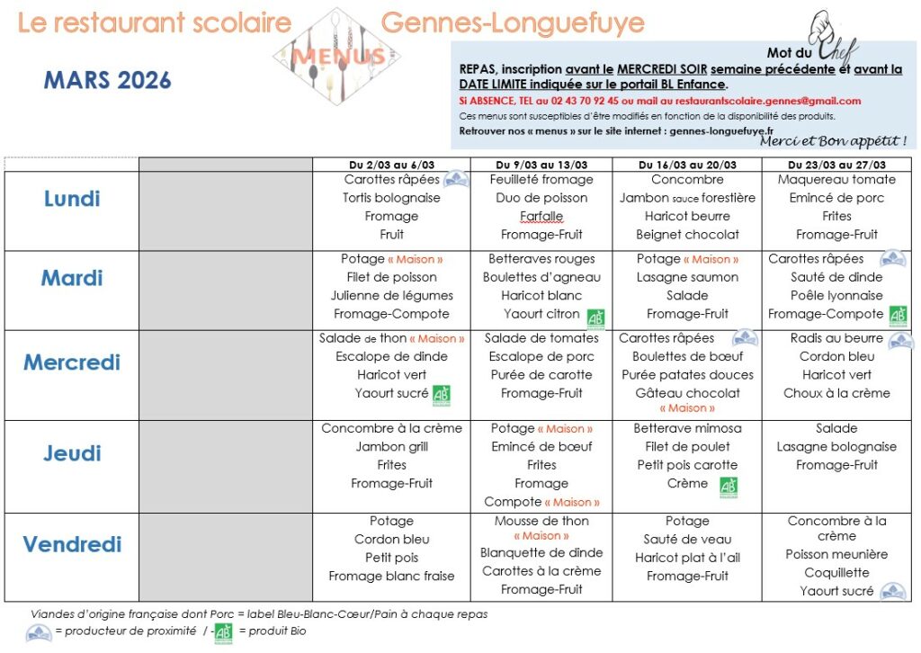 Des risques de retard de livraison ainsi que la variation des effectifs des enfants pour l’utilisation du restaurant scolaire pourraient entraîner des modifications dans les menus.
