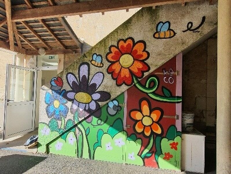 - La réalisation d’une fresque géante participative sur les murs de l’école avec l’aide de graffeurs et de professionnels artistiques.