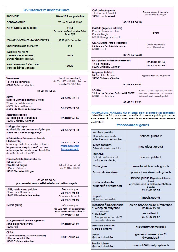 Pour simplifier vos démarches, consulter l’annuaire des services publics proposés par la mairie de Gennes-Longuefuye