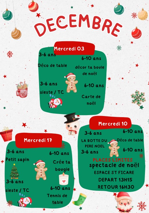 Tout au long de l’année sont organisées des activités en fonction des tranches d’âge.