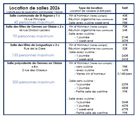 Salle des Fêtes de Gennes sur Glaize (près de la mairie)